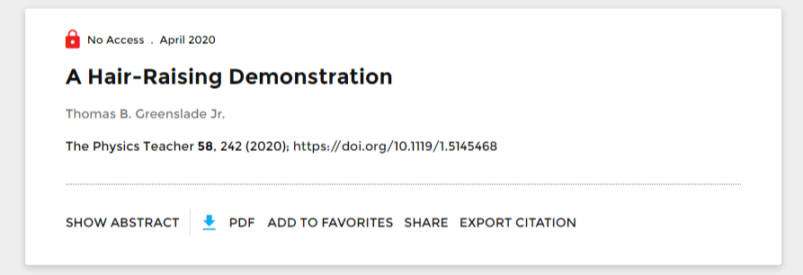 예를 들어 The Physics Teacher에 실린 기사를 보고자 하는데, 아래와 같은 기사를 보고 싶습니다.