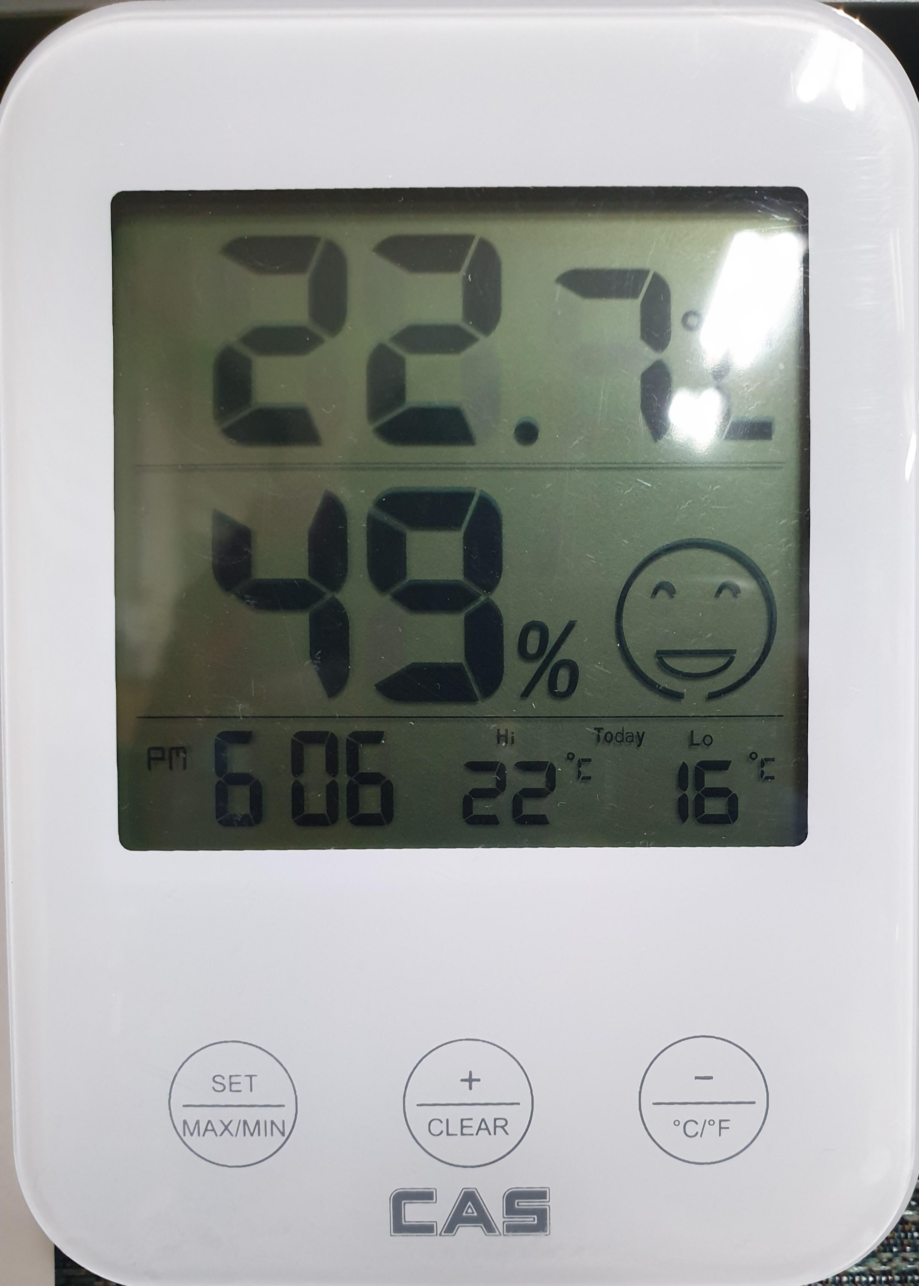 교무실에 간이 습도계를 놓아서 적정 습도(45-55%) 이상이면 꺼버리거나, 자동습도 조절기능을 이용한다.
